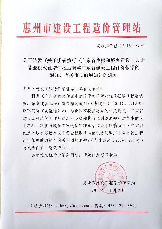 相關(guān)連接:關(guān)于明確執(zhí)行《關(guān)于營(yíng)業(yè)稅改征增值稅后調(diào)整廣東省建設(shè)工程計(jì)價(jià)依據(jù)的通知》有關(guān)事項(xiàng)的通知