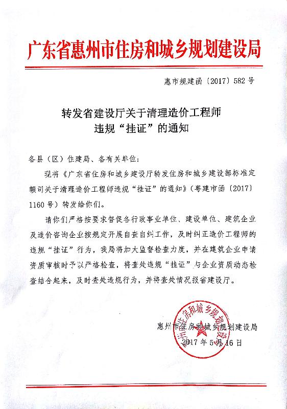 附件:廣東省住房和城鄉(xiāng)建設廳轉發(fā)住房城鄉(xiāng)建設部標準定額司關于清理造價工程師違規(guī) “掛證”的通知