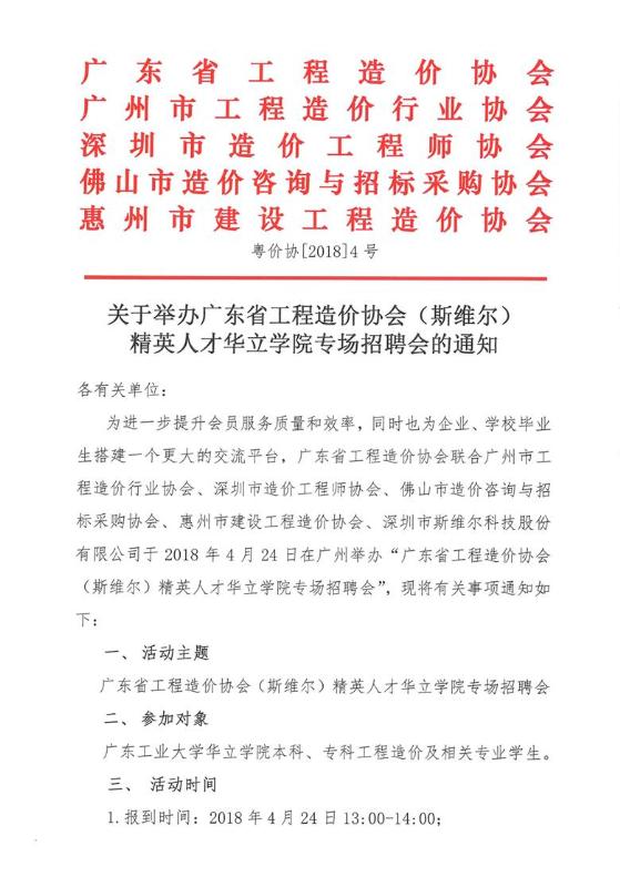 附件:關(guān)于舉辦廣東省工程造價協(xié)會(斯維爾)精英人才華立學(xué)院專場招聘會的通知