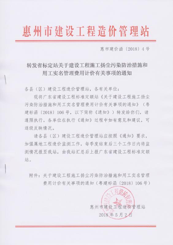 附件:關(guān)于建設(shè)工程施工揚(yáng)塵污染防治措施和用工實(shí)名管理費(fèi)用計(jì)價(jià)有關(guān)事項(xiàng)的通知(粵建標(biāo)函〔2018〕106號)