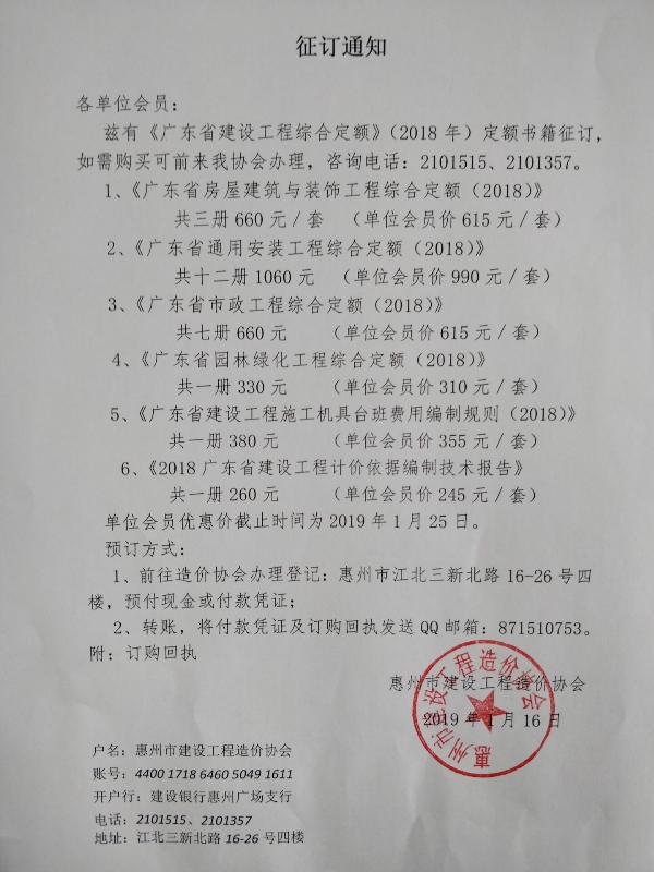 戶名:惠州市建設工程造價協(xié)會